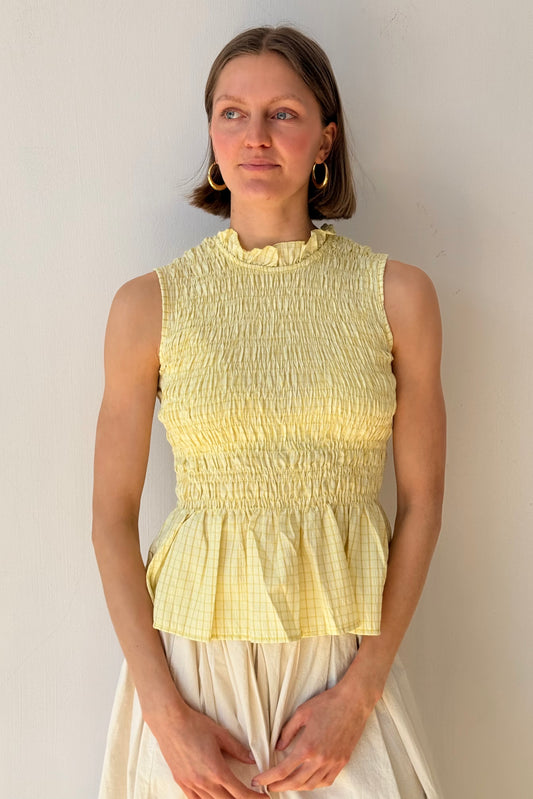 Leonora Smocked Blouse Sleeveless -Lemon