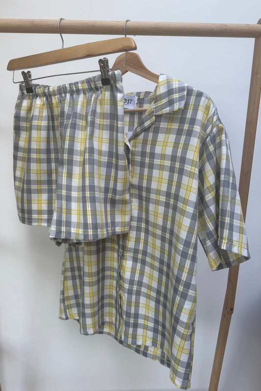 Regular price £5.00 GBPRegular priceUnit price / per£7.00 GBPSale price £5.00 GBPSaleLily Shirt and Shorts Co-Ord -Yellow Grey