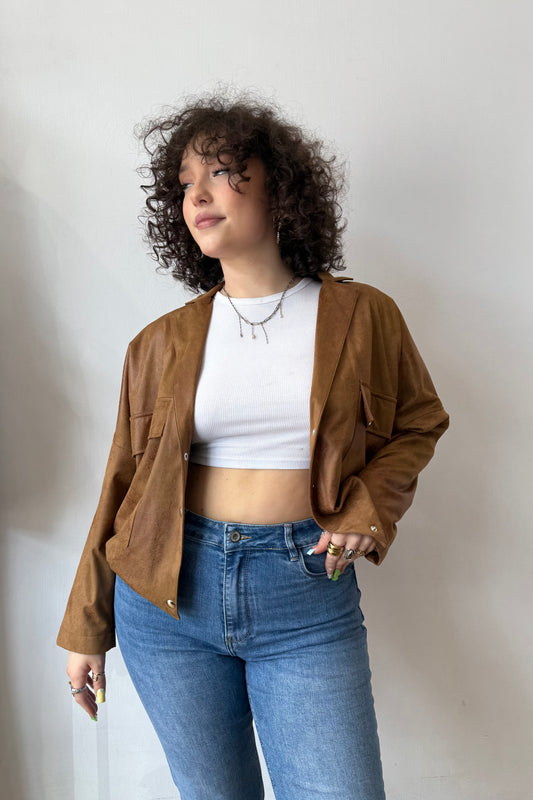 Regular price £16.00 GBPRegular priceUnit price / perSale price £16.00 GBPRakel Vegan Leather Jacket -Cognac