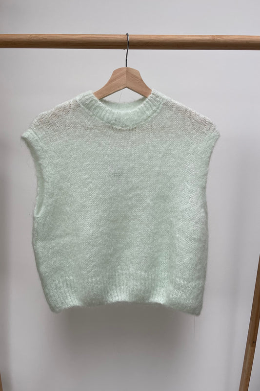 Regular price £65.00 GBPRegular priceUnit price / perSale price £65.00 GBPMonika Cropped Mohair Vest -Light Mint Green