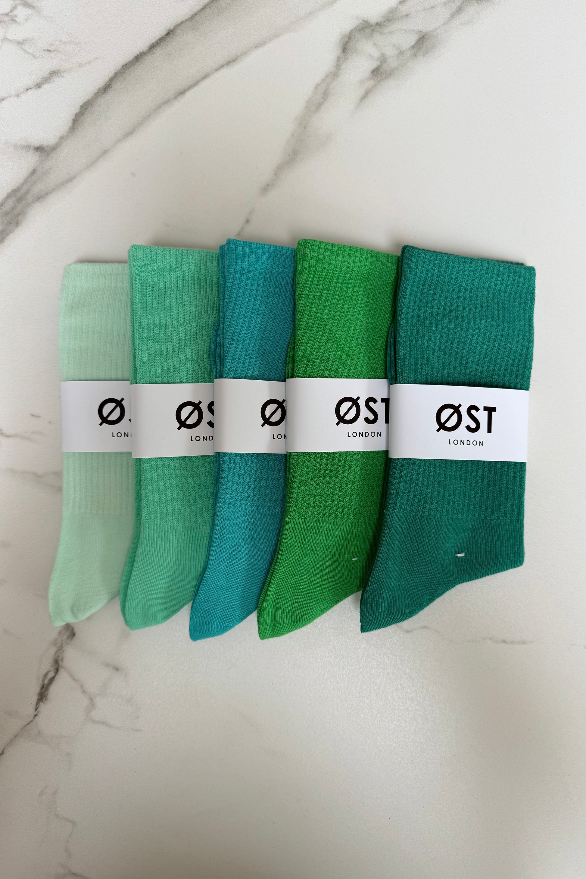 ØST London - 10- Pack Ribbed Socks, 2 of each tone. (Green Tones)