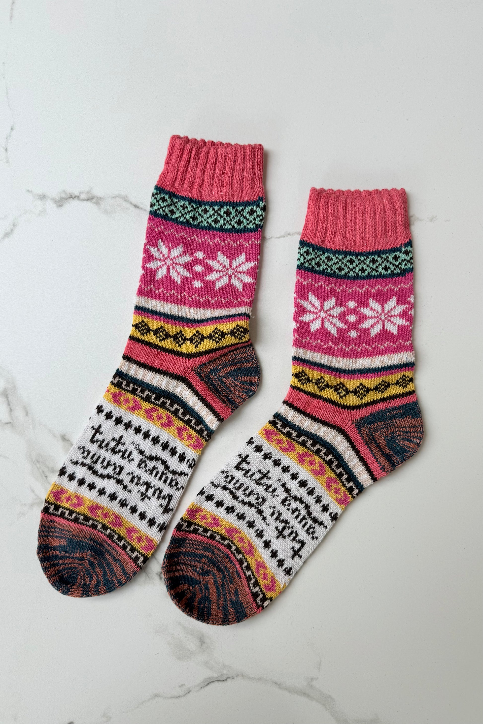 Fair Isle Wool Socks -Pink
