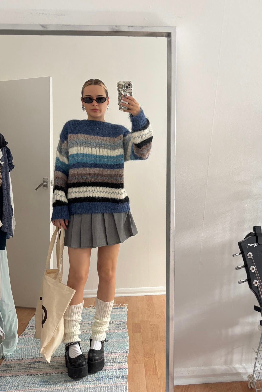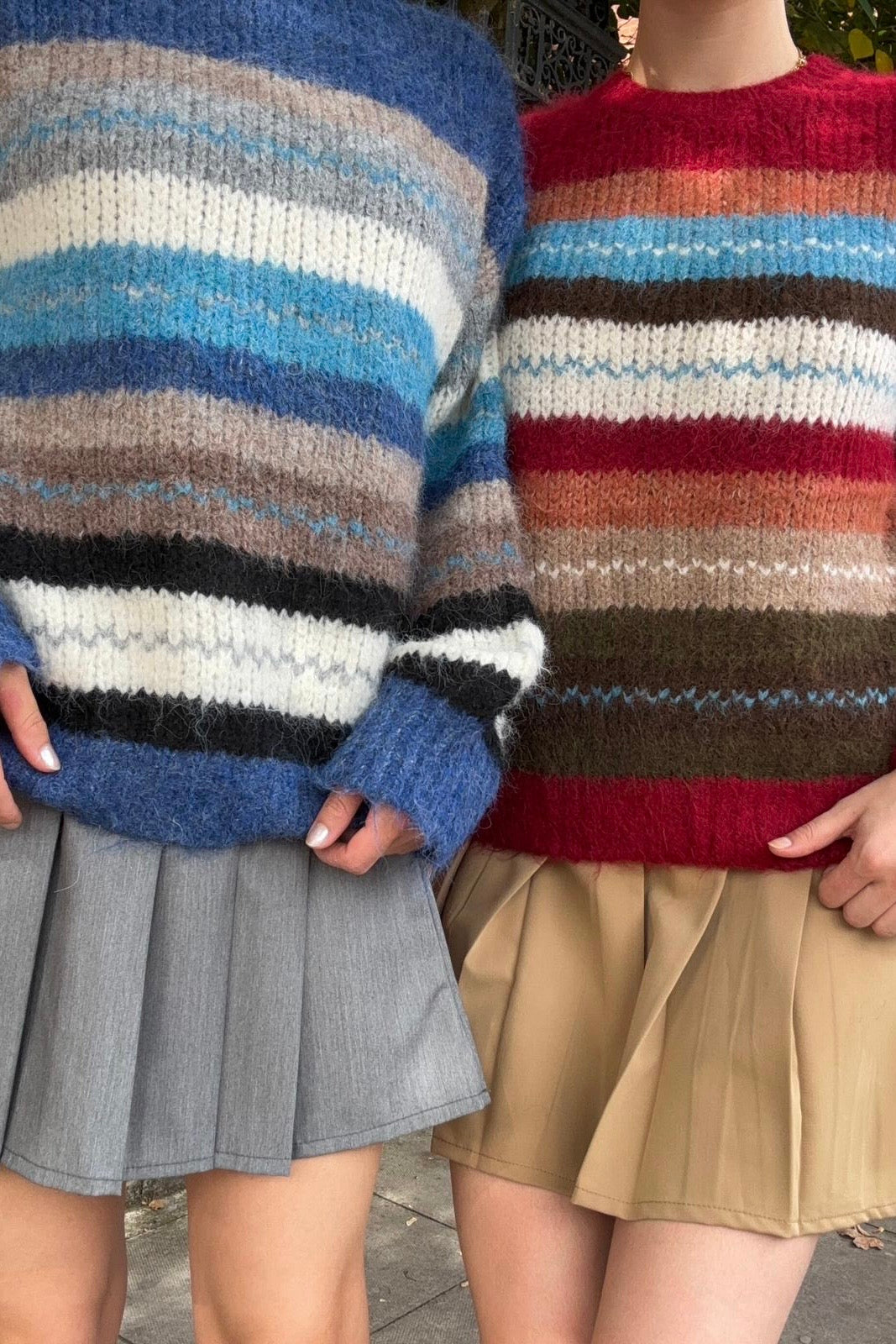 Cosy meets colourful in our striped wool blend jumper. Knitted in soft, fluffy yarn, it features a relaxed fit with a classic crew neckline and ribbed trims. The bold mix of stripes makes it a cheerful staple you’ll reach for season after season.