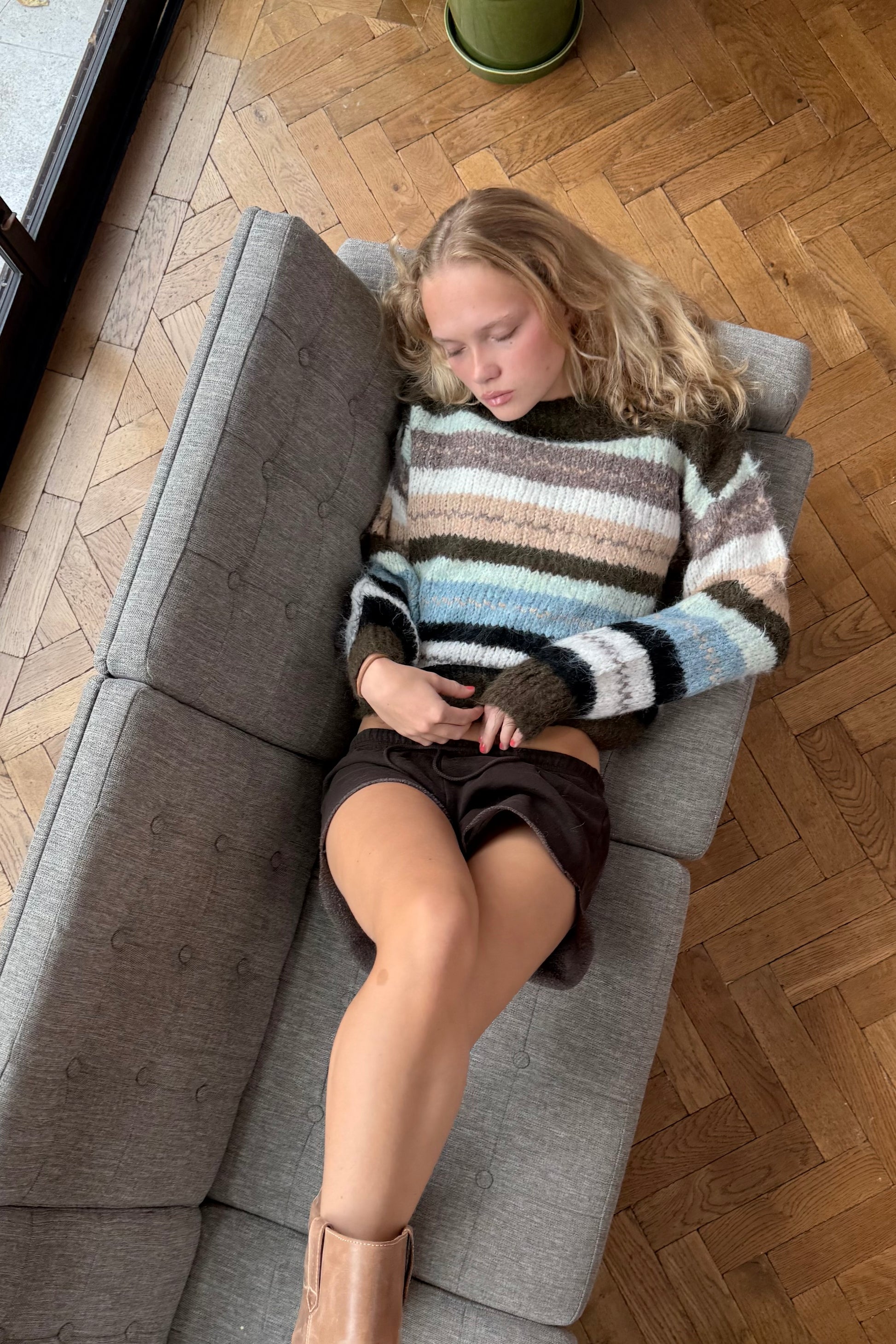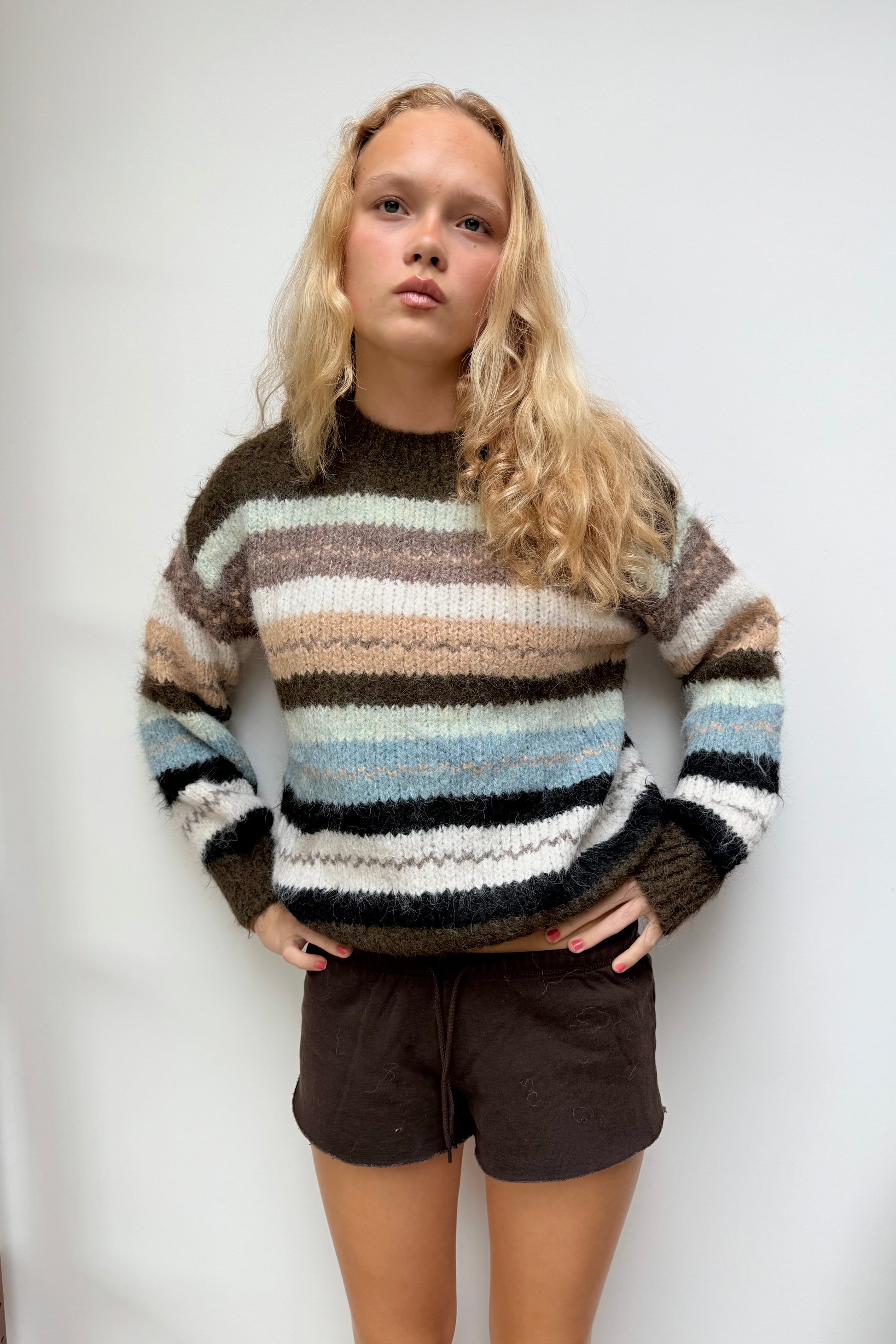 Cosy meets colourful in our striped wool blend jumper. Knitted in soft, fluffy yarn, it features a relaxed fit with a classic crew neckline and ribbed trims. The bold mix of stripes makes it a cheerful staple you’ll reach for season after season.