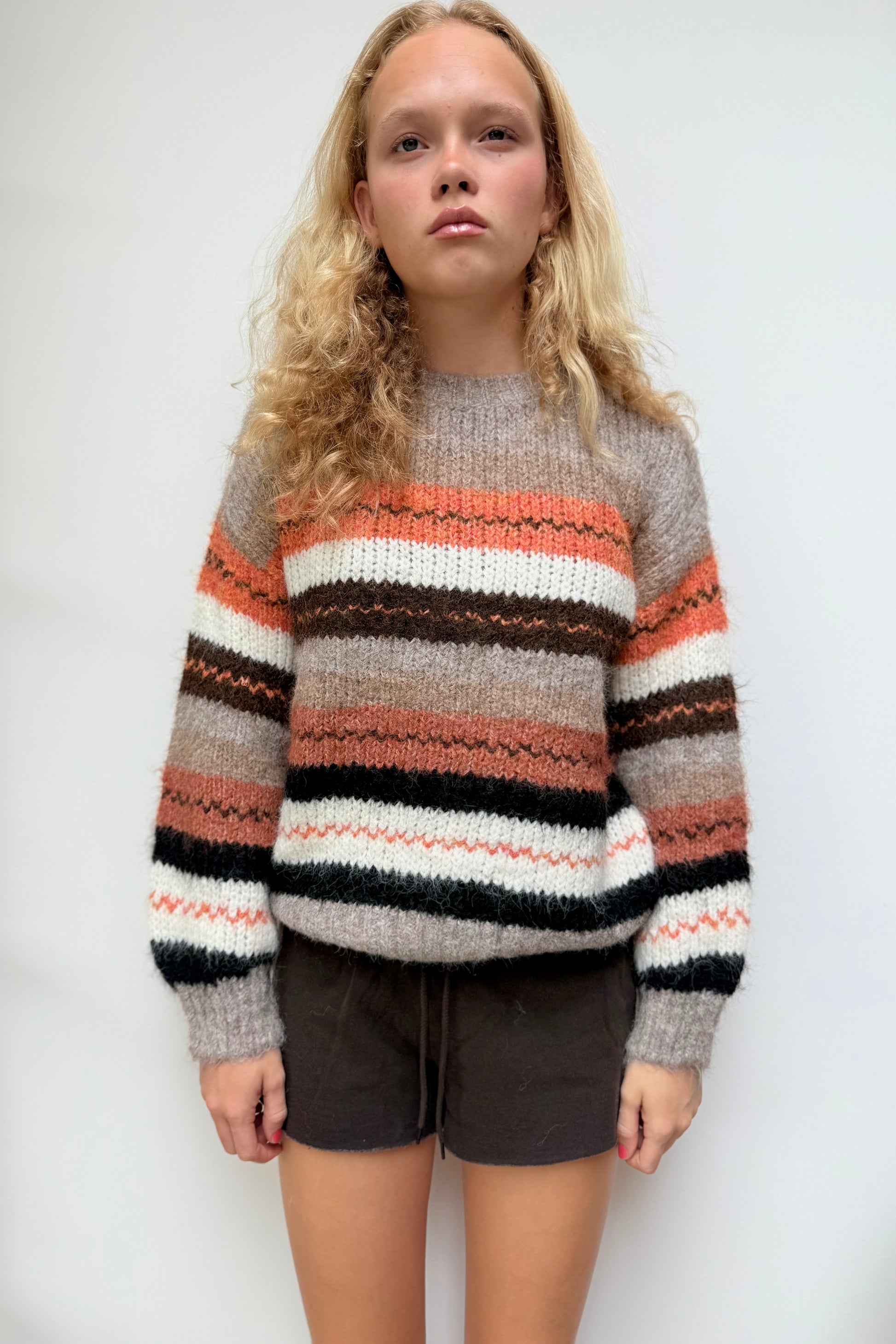 Cosy meets colourful in our striped wool blend jumper. Knitted in soft, fluffy yarn, it features a relaxed fit with a classic crew neckline and ribbed trims. The bold mix of stripes makes it a cheerful staple you’ll reach for season after season.