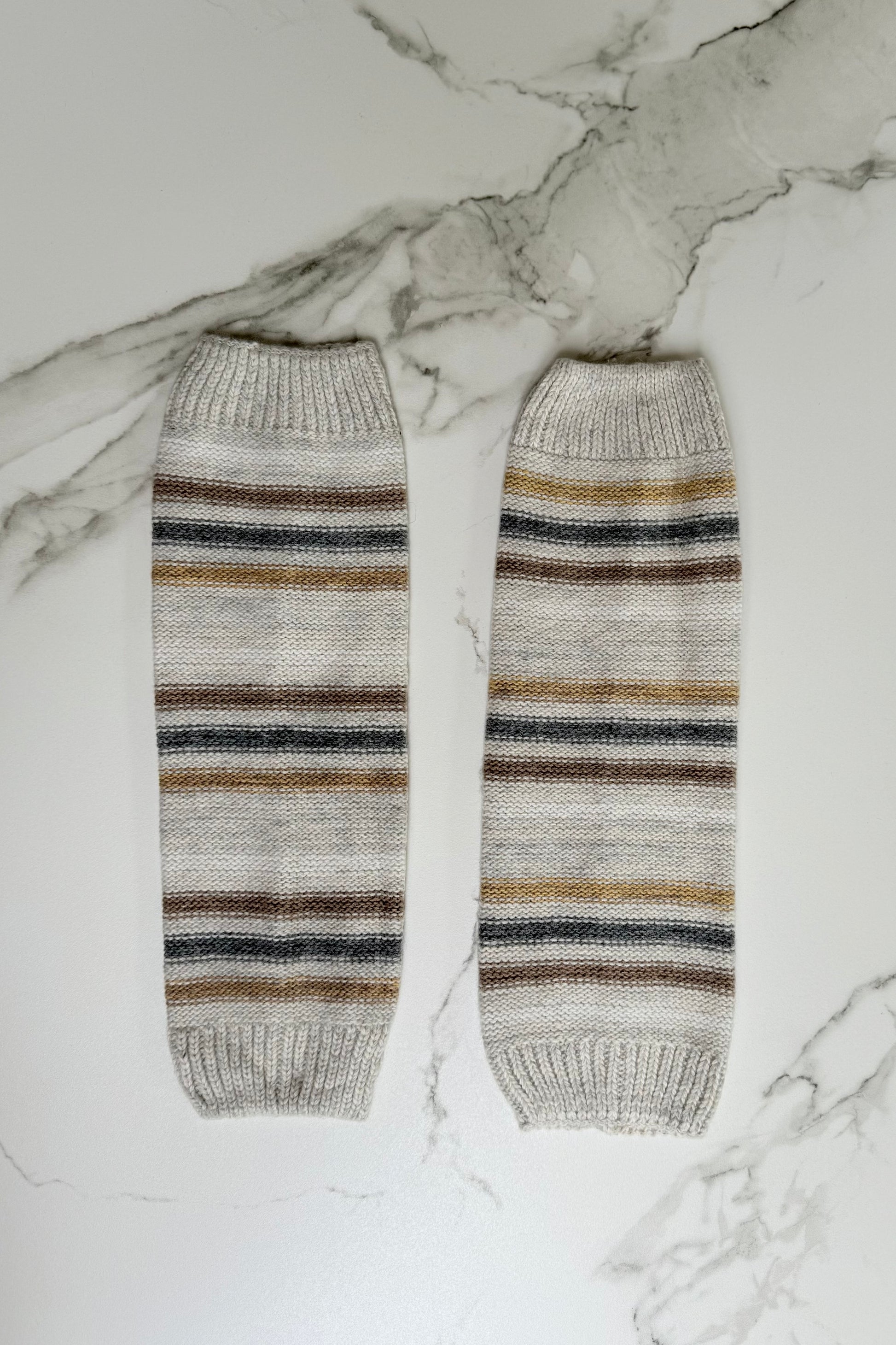 Cosy, nostalgic, and endlessly versatile - our striped knit legwarmers are the perfect finishing touch for chilly days. Crafted in soft, breathable cotton-blend yarn, they feature a beautiful neutral stripe palette of oat, caramel, charcoal, and mustard tones - designed to complement your wardrobe all season long.