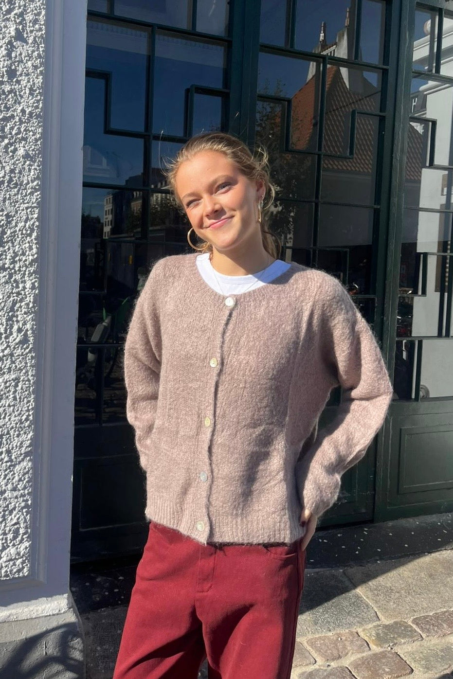 This beautifully soft cardigan is made in Italy from a fine mohair blend that feels as airy as it is warm. In a delicate blue, it adds a gentle, feminine touch to any outfit. Designed with a classic round neckline, mother-of-pearl buttons, and a relaxed silhouette, it layers effortlessly over both casual and dressier looks. A timeless essential with Italian craftsmanship at its core.