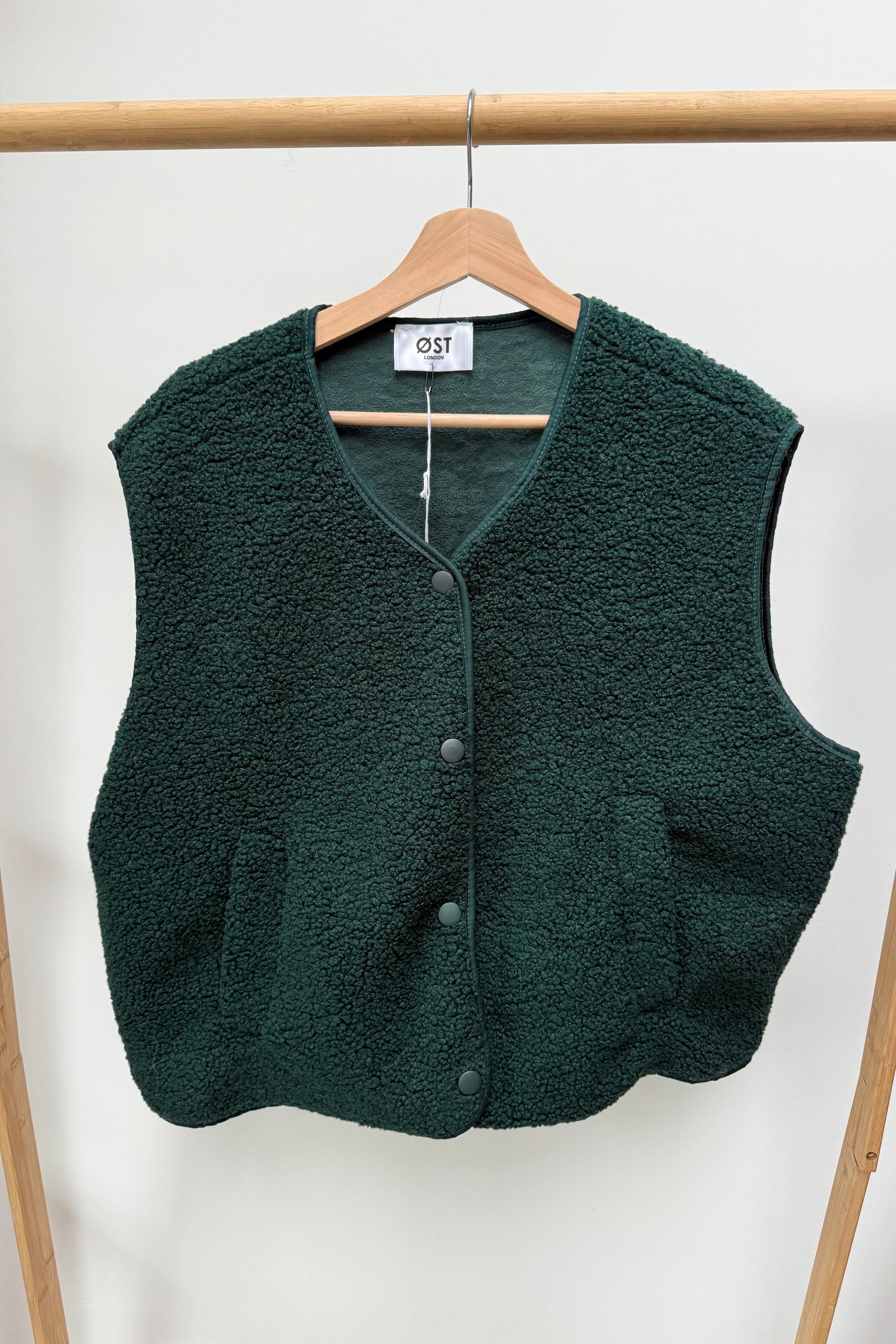 A cosy classic with a modern twist. The Kirsten Sleeveless Jacket is crafted from soft, textured fleece that adds both warmth and style to any outfit. Designed in a beautiful rust shade with subtle contrast binding, it’s perfect for layering over shirts, knits, or dresses when the temperature dips.
