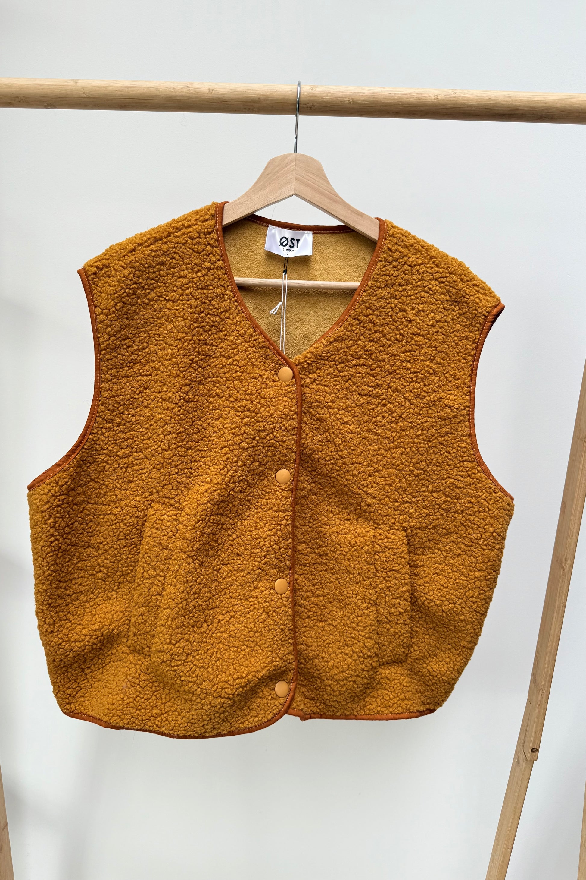 A cosy classic with a modern twist. The Kirsten Sleeveless Jacket is crafted from soft, textured fleece that adds both warmth and style to any outfit. Designed in a beautiful rust shade with subtle contrast binding, it’s perfect for layering over shirts, knits, or dresses when the temperature dips.