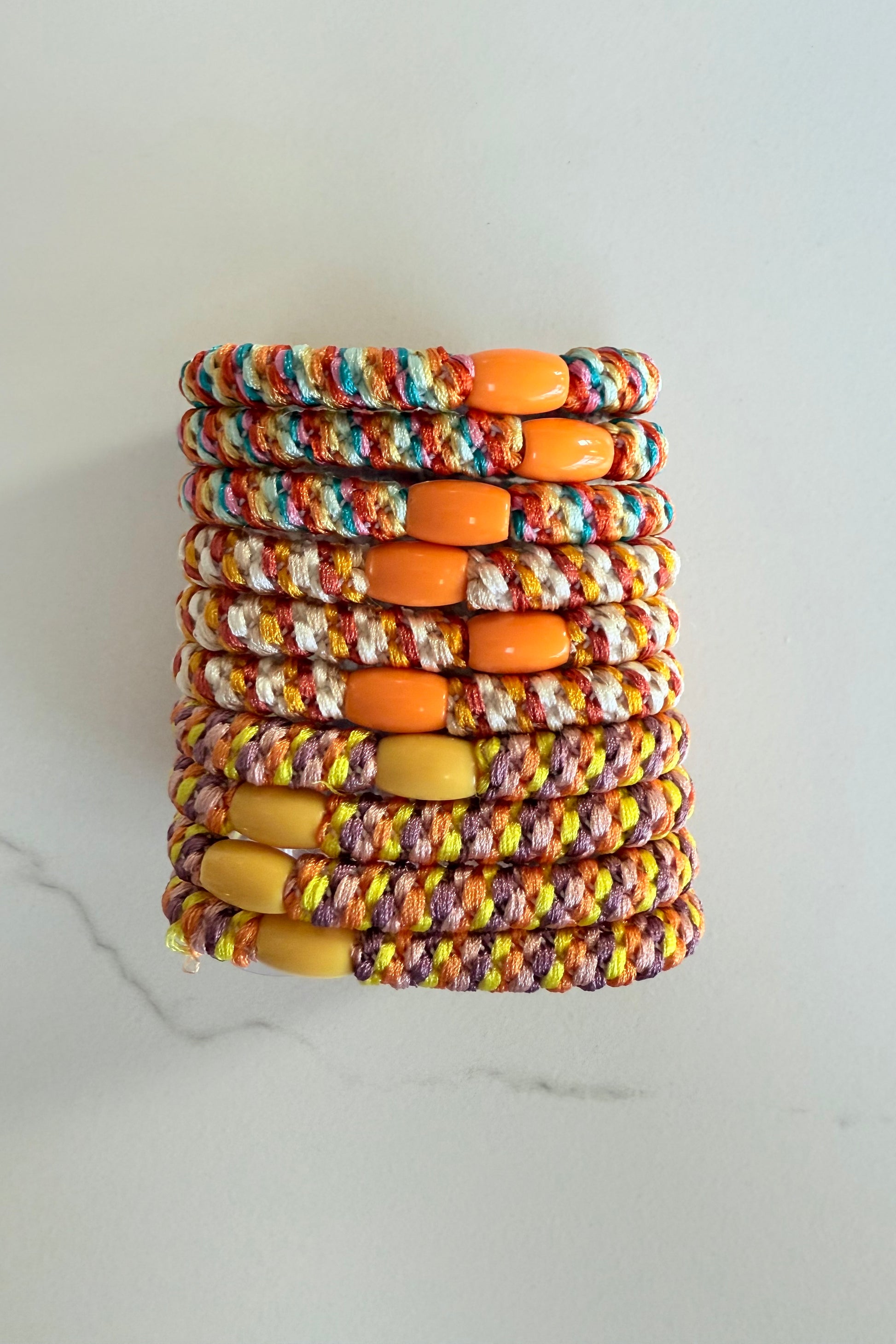 Meet your new favourite hair ties. This 10-pack includes a mix of beautifully woven, soft-touch elastics in neutral and warm tones.