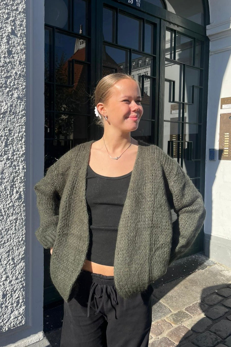 Classic cardigan with an oversized, relaxed silhouette. Thick, warm, soft, cuddly, and silky to the touch. Creates a casual and cosy look. The open cardigan fits well with jeans, trousers, or with a skirt or a light dress. Thanks to the mohair blend, the cardigan is comfortable to wear in any weather. Comes in various colours.