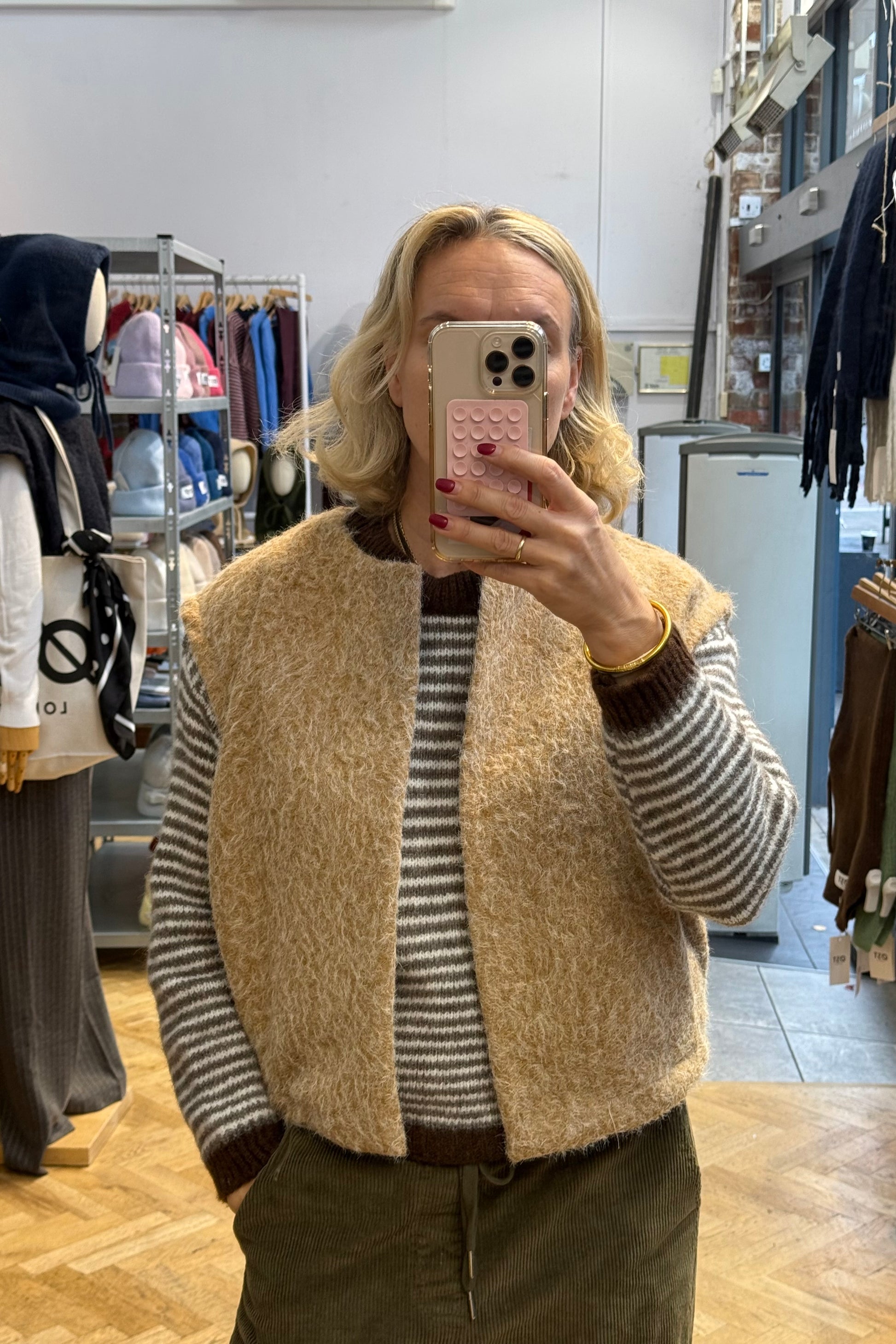 Wear it over a crisp shirt, a light knit, or your favourite dress -perfect for adding cosy structure to your autumn look.